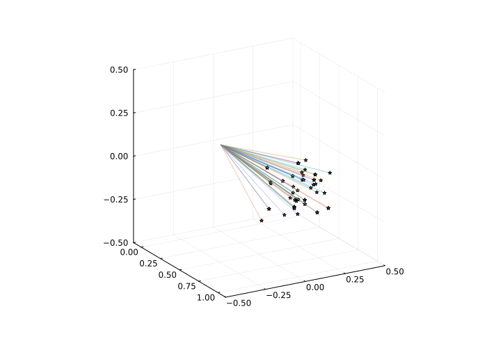 plot!( p2, [0,Pi[1]], [0,Pi[2]], [0,Pi[3]], leg=:false, xlimits=(-0.1,1.1), ylimits=(-.3,.3), zlimits=(-.3,.3),
