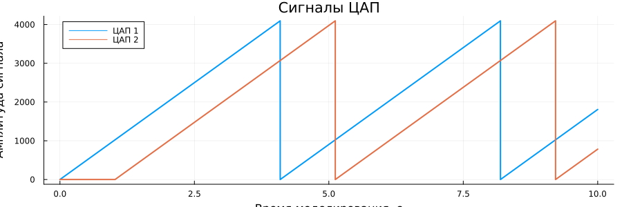从得到的图中可以看出,锯齿波信号是用给定幅度建模的。 ,用于第二DAC的信号以1024个采样的延迟发送。