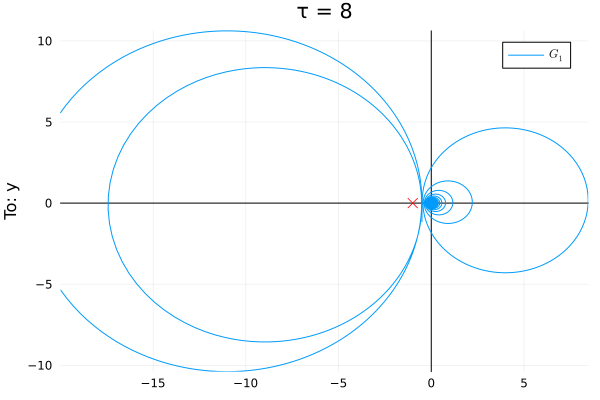 fig_nyquist = nyquistplot(C * P, exp10.(-1:1e-4:2), title="τ = $τ")