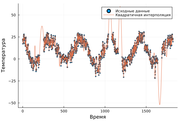 plot!(B, label="二次插值", xlabel="时间", ylabel="温度")# 温度与时间依赖性的输出