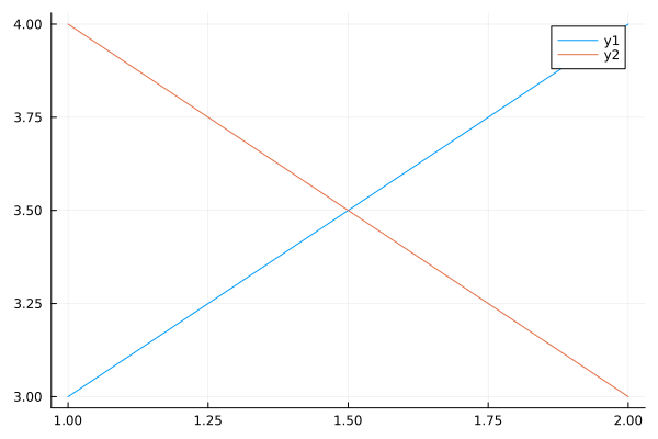 plot!(py"""[1, 2]""",py"""[4, 3]""") # 绘制降序图