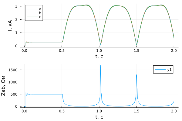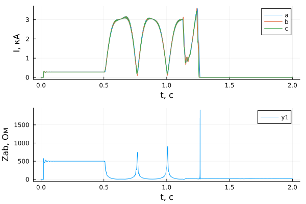 p1 = plot(sim_time, results[n, dir], xlabel = "t,与", ylabel = "我,kA", label = ["a" "b" "c"])