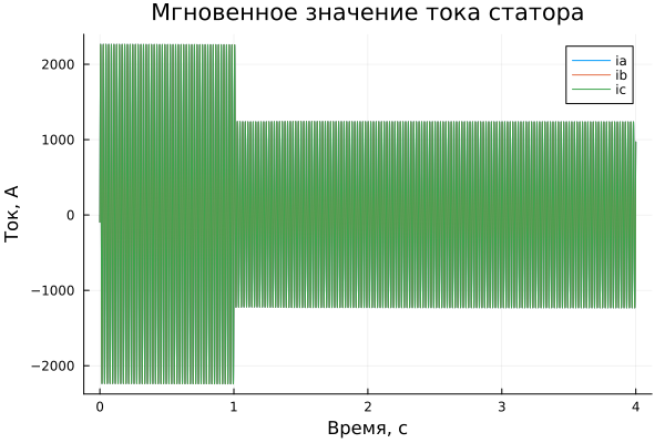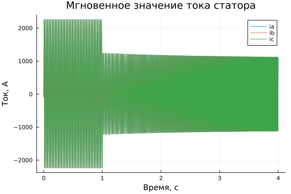 plot!(title = "定子电流瞬时值", ylabel = "电流,A", xlabel="时间,c")