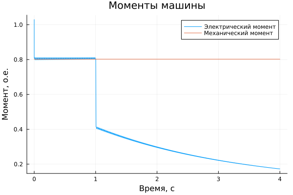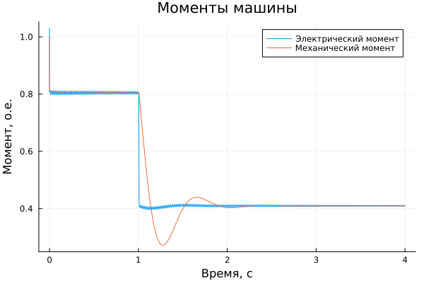 请注意,为了将速度保持在其参考值(1oe),调节器已将机械扭矩降低到0.4oe。