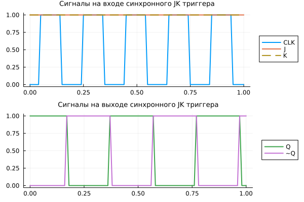 label=["Q" "~Q"], title="同步JK触发器输出端的信号"),