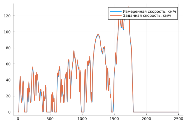 曲线图显示电动汽车以小偏差坚持设定速度。 您可以通过微调单元中的控件来减少这些偏差。 司机。