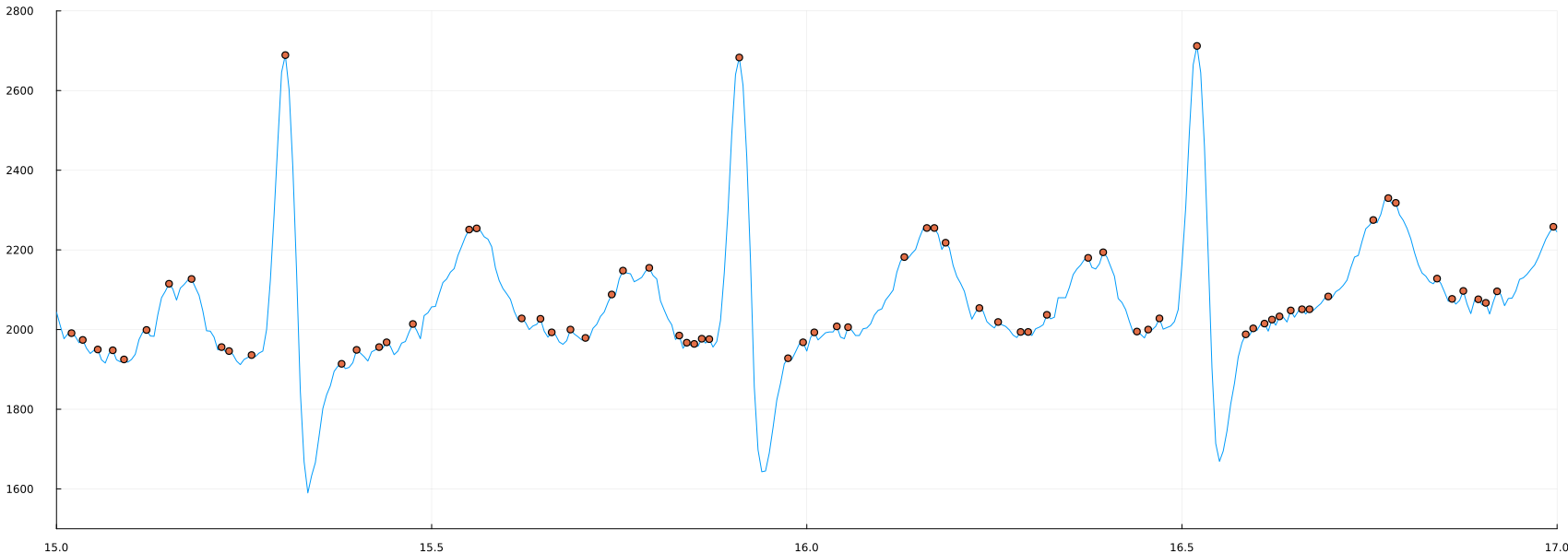 plot(time_1, ecg, label=false, ylimits=(1500,2800), xlimits=(15, 17))