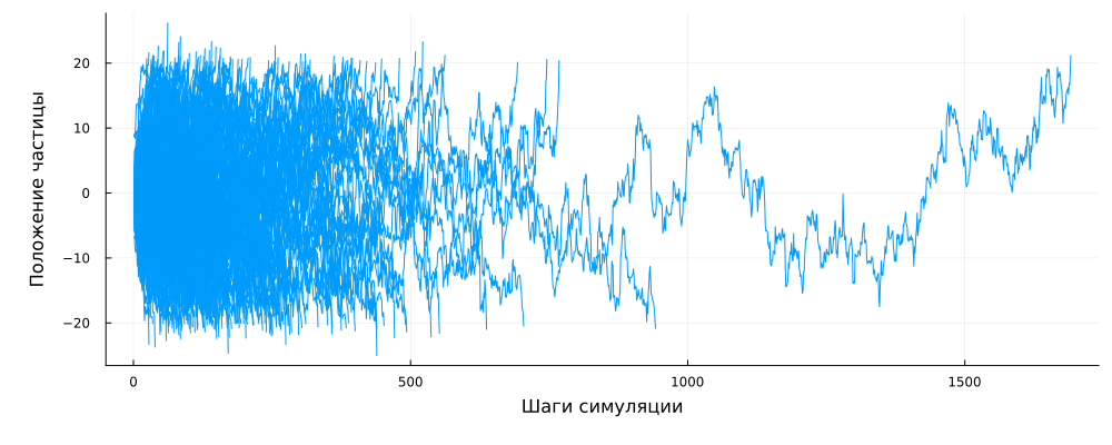 plot!( legend=:false, size=(1000,400), xlabel="仿真步骤", ylabel="粒子位置", left_margin=10mm, bottom_margin=10mm )