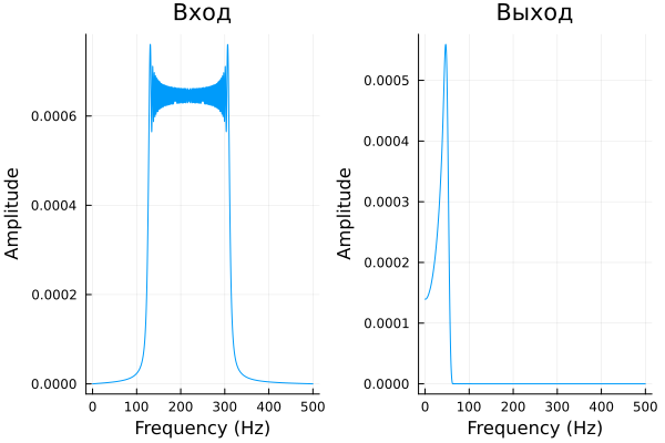 plot(freqs_out, spectrum_out, xlabel="Frequency (Hz)", ylabel="Amplitude", title="出口;出口", label="")
