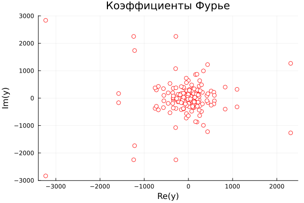 xlabel="Re(y)", ylabel="Im(y)", title="傅立叶系数", leg=false )
