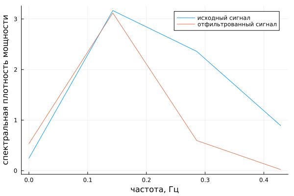 plot!(freq(p2), power(p2), label="отфильтрованный сигнал")
