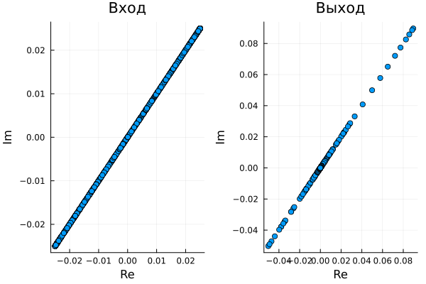 Теперь посмотрим результаты спектрального сравнения входа и выхода.