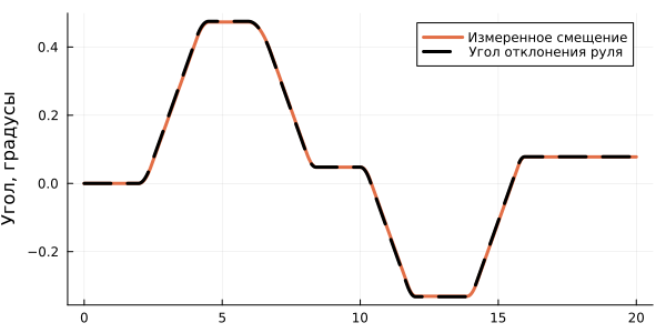 label = ["Измеренное смещение" "Угол отклонения руля"],