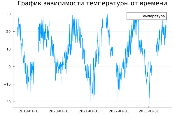 По графику видно, что в данных есть пропуски, их можно заполнить используя библиотеки Impute и DataInterpolations.