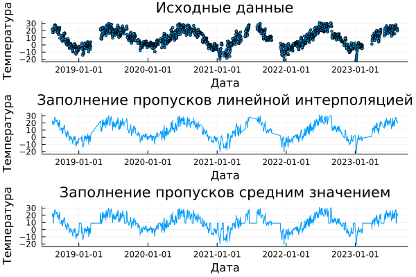 В данном примере будет продемонстрирован процесс загрузки данных из формата XLSX и заполнение пропусков в них с помощью библиотек Impute и DataInterpolations.