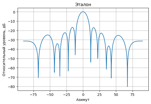 plot_pattern_cut(az_plot, el_plot, pat_ref, el0=0.0, title="Эталон")