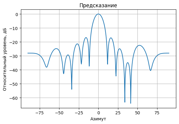 plot_pattern_cut(az_plot, el_plot, pat_pred_new, el0=0.0, title="Предсказание")