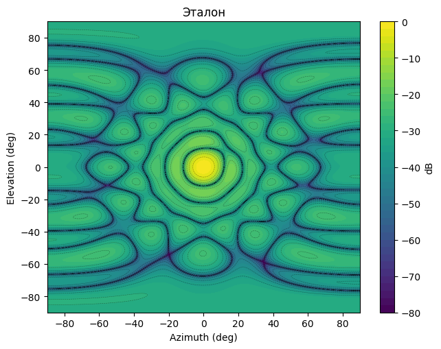 plot_pattern_2d(az_plot, el_plot, pat_ref, db_floor=-80, title='Эталон')