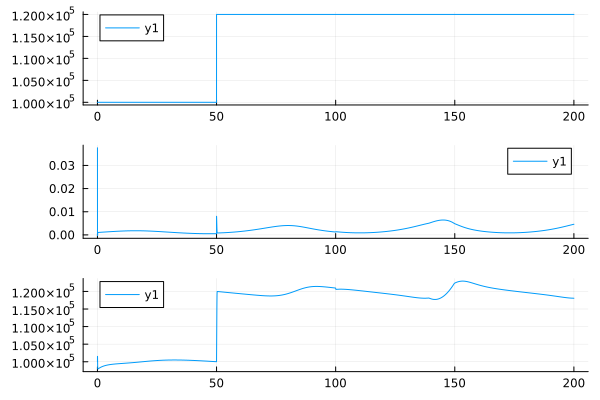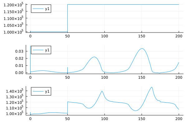 plot( df.time, df.set_point ), plot( df.time, df.control ), plot( df.time, df.pressure ), layout=(3,1)