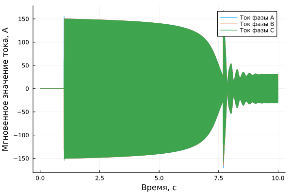 plot!(ylabel = "Мгновенное значение тока, А", xlabel="Время, c")