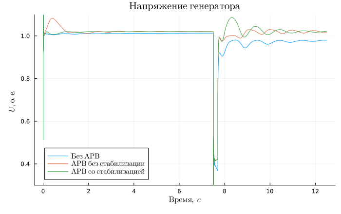 plot!(sim_time, U3, label = L"АРВ\; со\; стабилизацией", ylims = (0.3, 1.1))